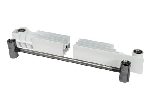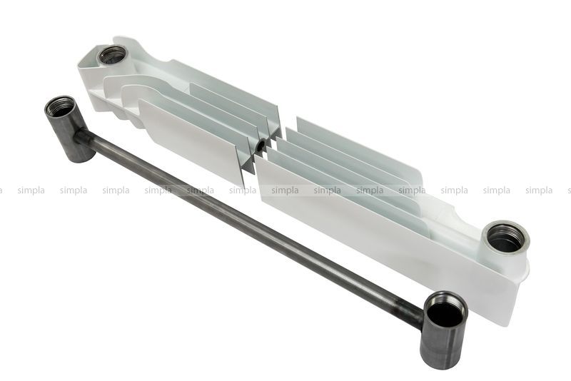 Увеличенное круглое сечение вертикального канала секции алюминиевого радиатора делает прибор прочным, пригодным к работе при загрязненном теплоносителе, эффективным в гравитационных системах отопления с естественной циркуляцией теплоносителя, способным не только передавать,но и аккумулировать тепло